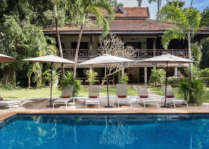 Located within a 7-km distance of the massive Angkor Wat Temple, the 4-bedroom Private Villa By La Palmeraie Siem Reap offers a terrace with views of the garden.